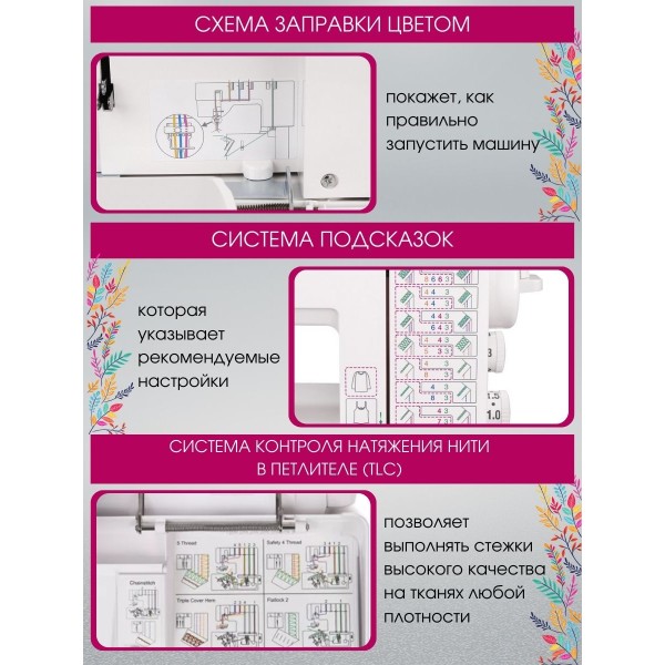- Цветная маркировка для упрощения заправки нитей