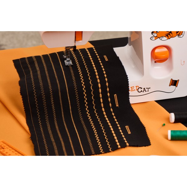 В машине 6-сегментная зубчатая рейка, благодаря которой машина шьёт любые типы тканей, джинсу, трикотаж и органзу.