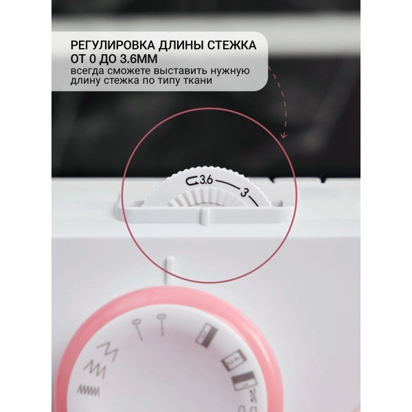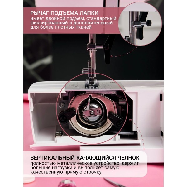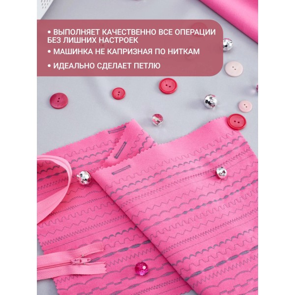 | 12 швейных операций | рабочие строчки, оверлочная строчка (зигзаг), эластичный зигзаг, потайные строчки, декоративные строчки |