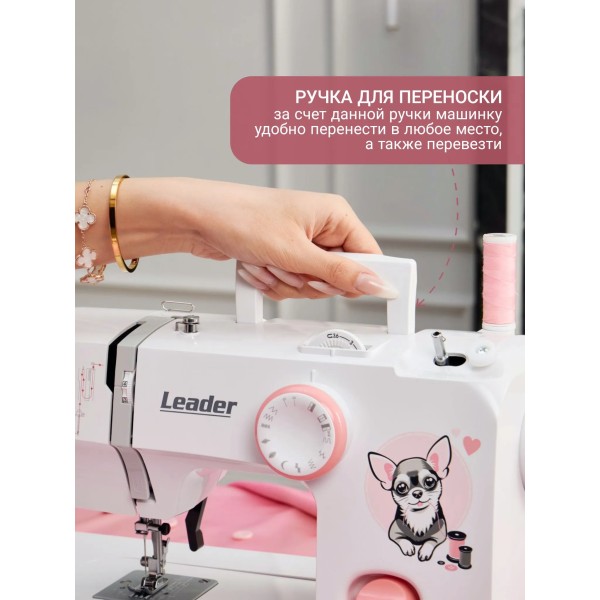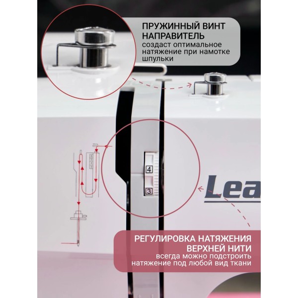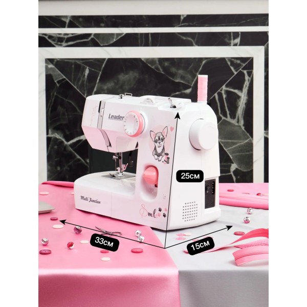 Электрическая швейная машинка с ножной педалью от бренда LEADER– качественное оборудование для начинающих и профессиональных швей! Многофункциональная и компактная машинка с возможностью регулировки скорости шитья выполняет большое количество разных строчек: от прямой, декоративной до соединительной, потайной и зигзага. Модель также выполняет петлю – полуавтомат (полуавтоматическая петля). Настольная педальная швейная машинка с подсветкой рабочей зоны имеет классический вертикальный качающийся челнок, удобный катушкодержатель и нитеобрезатель. Для управления устройством предусмотрены круглый переключатель. Универсальное электрооборудование имеет отсек для хранения ниток, иголок и других швейных принадлежностей. Благодаря металлической основе конструкция машинки очень устойчива. Полезная бытовая техника поможет сшить женскую, мужскую или детскую одежду и другие изделия из разных тканей. Она подходит для комфортной работы с трикотажными или джинсовыми материалами и даже с мягкой кожей благодаря мощности 70 Вт.
