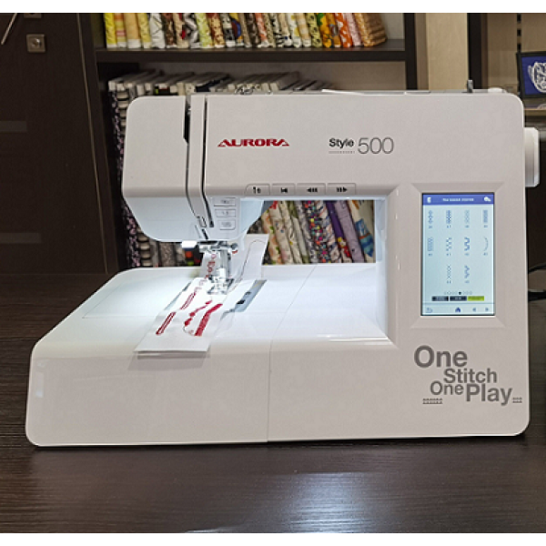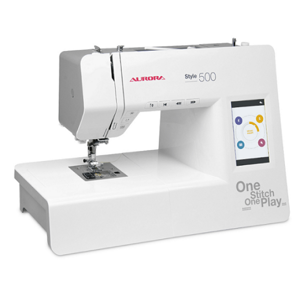 Aurora Style 500 - компьютеризированная швейная машина. Интуитивный интерфейс и большой цветной сенсорный дисплей (5") позволяет выбрать швейную операцию и изменить настройки шитья. 70 швейных операций включают в себя рабочие, декоративные, строчки для квилтинга, бордюры, имитации вышивки и многое другое.