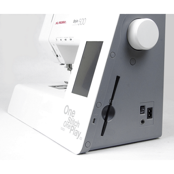 Aurora Style 500 - компьютеризированная швейная машина с интуитивным интерфейсом. На большой полноцветной сенсорной панели (5") можно выбрать швейную операцию и изменить настройки шитья. 70 швейных операций включают в себя рабочие, декоративные, строчки для квилтинга, бордюры, имитации вышивки и многое другое.