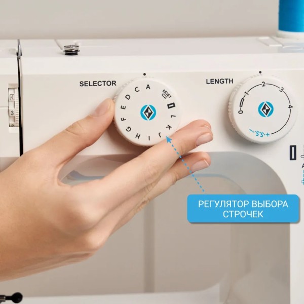 Для закрепки перед началом шитья, штопки и вышивки используйте функцию реверса. Также используется для штопки изделий и вышивке (штопательная пластина в комплекте).