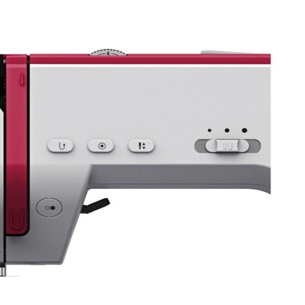 Нажатием кнопки Старт-Стоп можно запустить или остановить машину. В этом случае пусковой педалью можно не пользоваться. А скорость можно переключать электронным регулятором, который расположен прямо на корпусе машины. Одной из отличительных особенностей Bernina Bernette Sew&Go 7 является принудительная остановка иглы в верхнем и нижнем положении. Перед началом шитья нажмите кнопку перестановки иглы (позиционирования). Этой кнопкой можно выбрать, будет ли находиться игла после остановки машины в верхнем или нижнем положении. Нажмите кнопку два раза - будет выполнен один стежок. Слева от кнопки позиционирования расположены кнопки реверса и точечной закрепки.