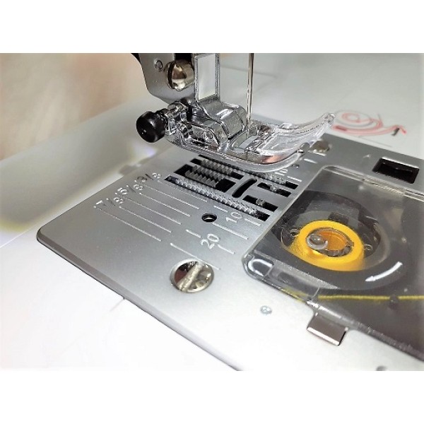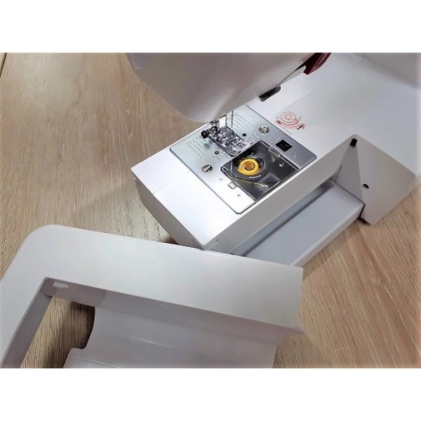 Стоит отметить достаточно высокую для бытовой швейной машины скорость шитья – до 850 ст/мин. Для освещения производитель использовал экономичные LED-лапмпы большой яркости с долгим сроком службы.