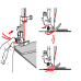 Для шитья на толстых материалах можно использовать универсальную лапку. Черной кнопкой слева можно зафиксировать лапку в горизонтальном положении, если Вы нажмете ее до опускания на материал. Таким образом, гарантируется равномерная подача в начале шитья и при переходе через утолщенные места материала (прошивание нескольких слоев, швов, подшивка джинсовой ткани).