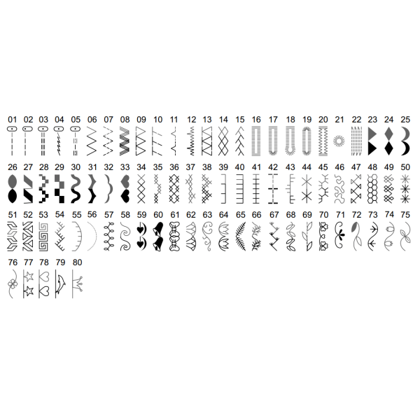 Номер выбранной операции высвечивается на дисплее (напомним, что у данной модели их 80). Чтобы посмотреть или изменить параметры строчки, нужно нажать на кнопку MODE. Световой индикатор будет переходить по последовательности режимов – рисунок, ширина стежка, длина стежка. Регулируются они путем нажатия кнопок «+» или « - ». Часто используемые рабочие строчки доступны кнопками прямого выбора рисунка. Они также расположены на панели машины.