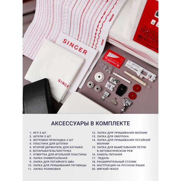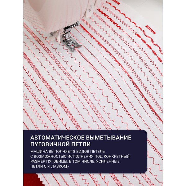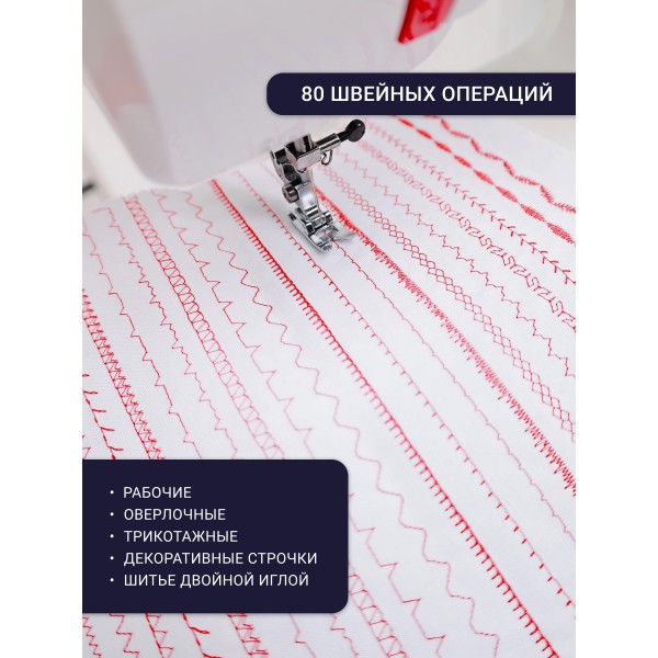 - 80 операций. Выбирайте из множества стежков для основного, декоративного шитья, петель и многого другого.